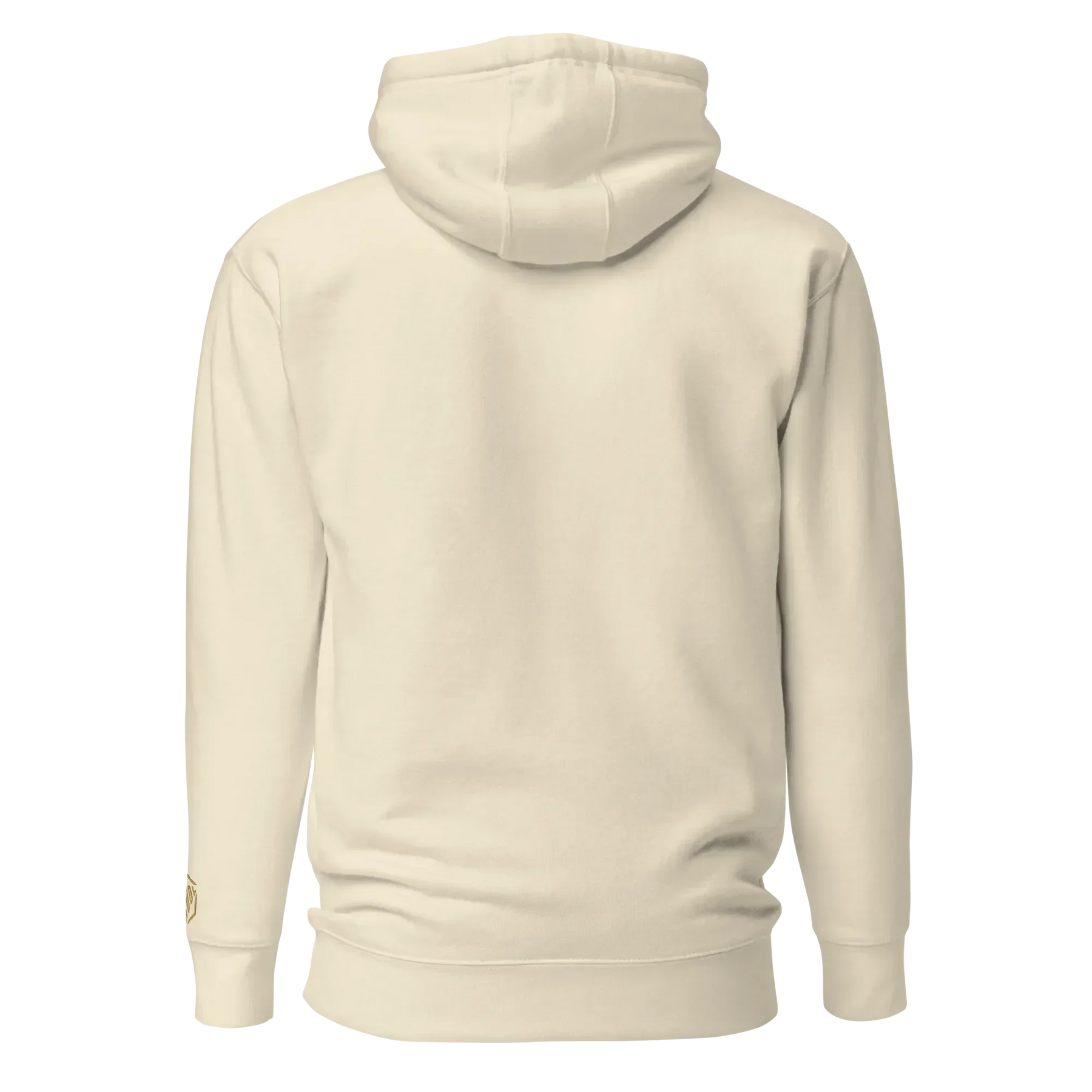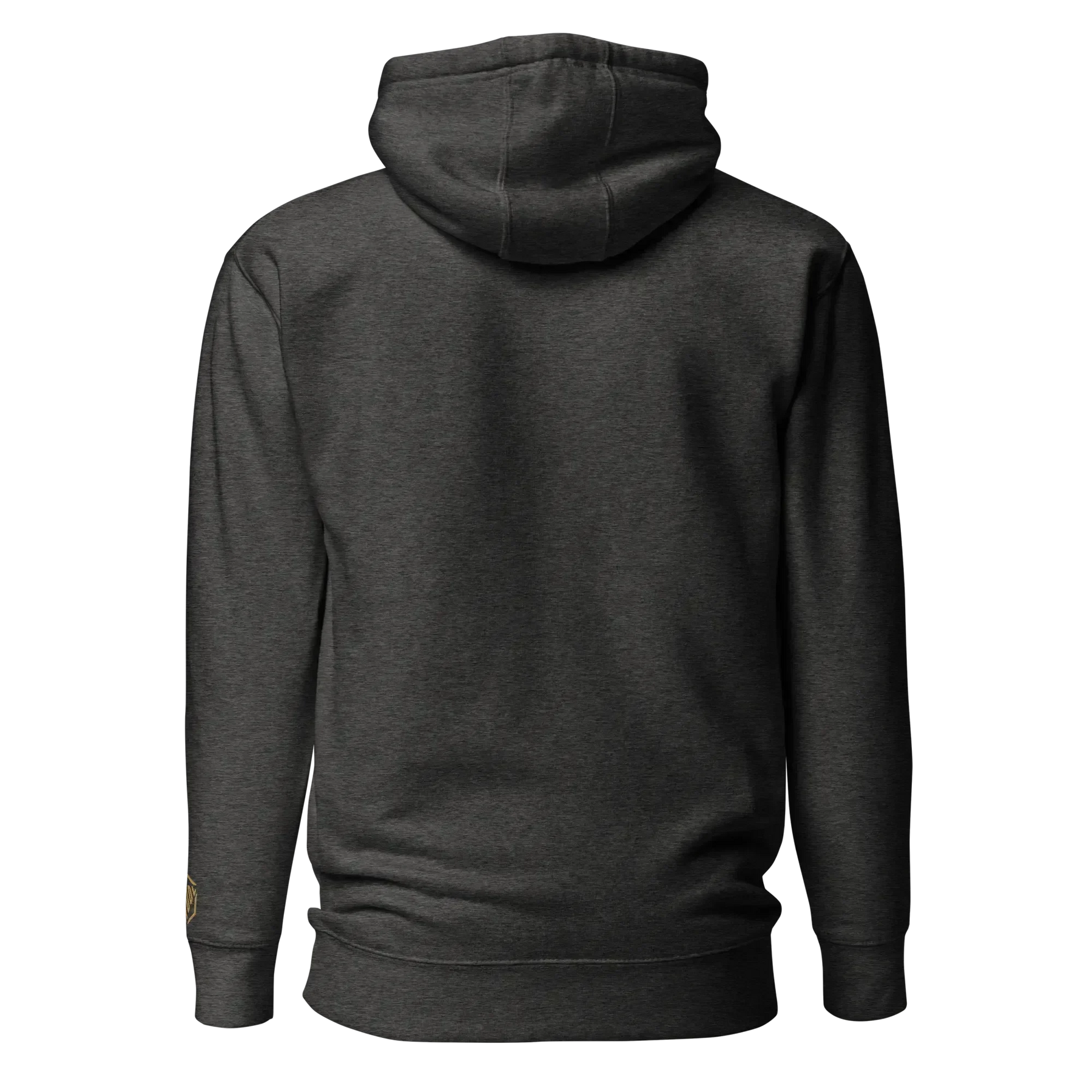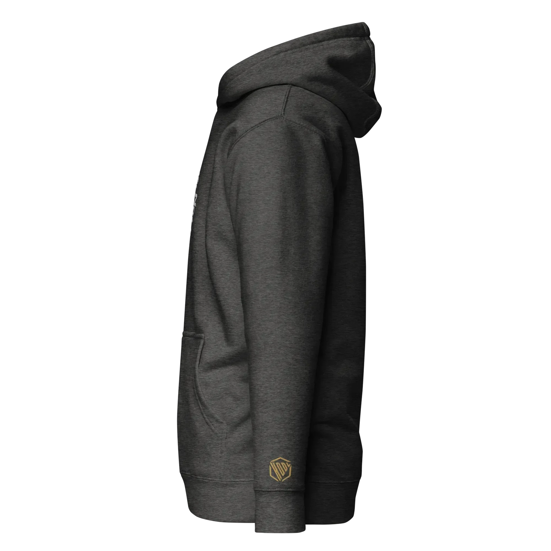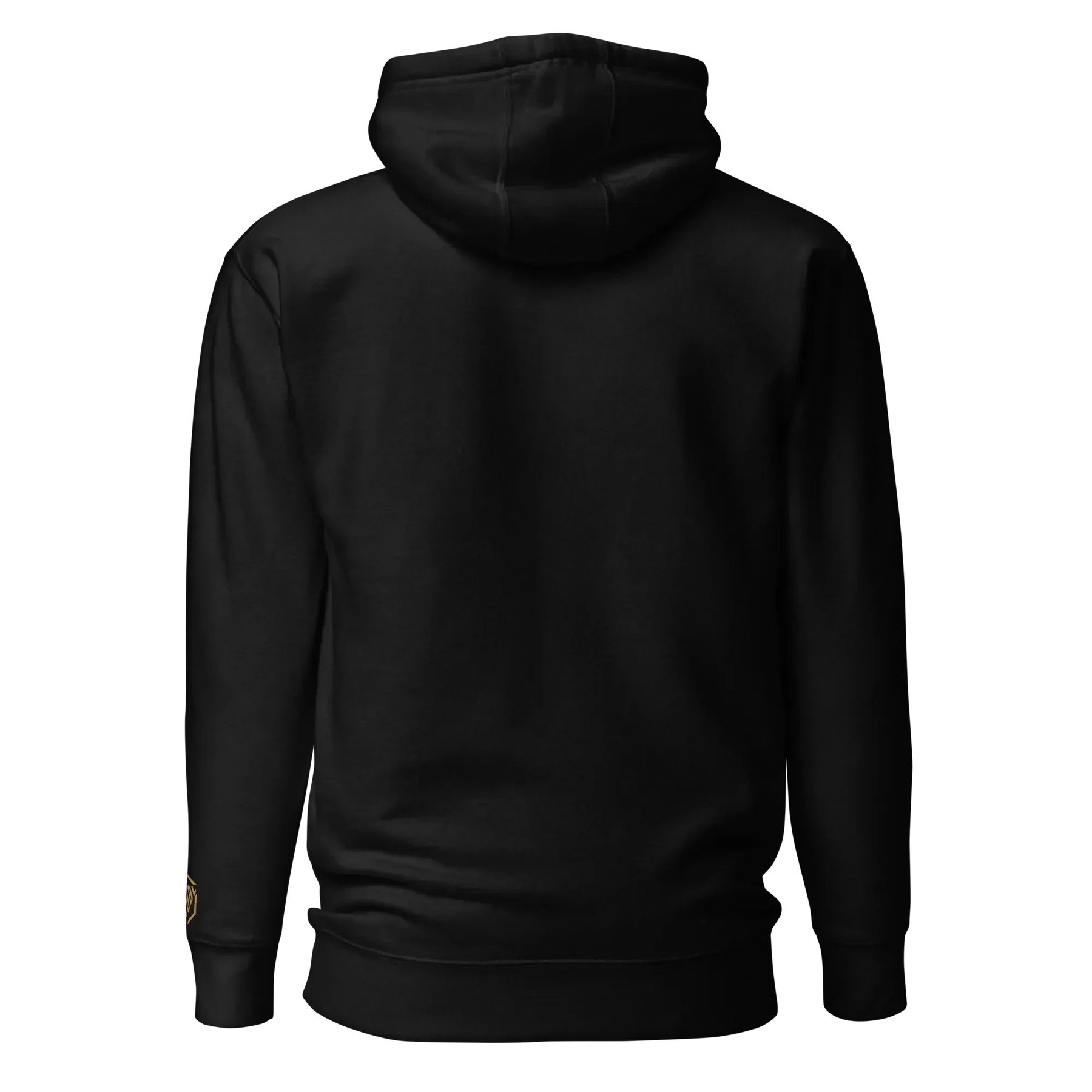 Elegantes Farbschema: Gold, Schwarz und Weiß auf einem schwarzen Hoodie – ein zeitloses Design, das auffällt.
