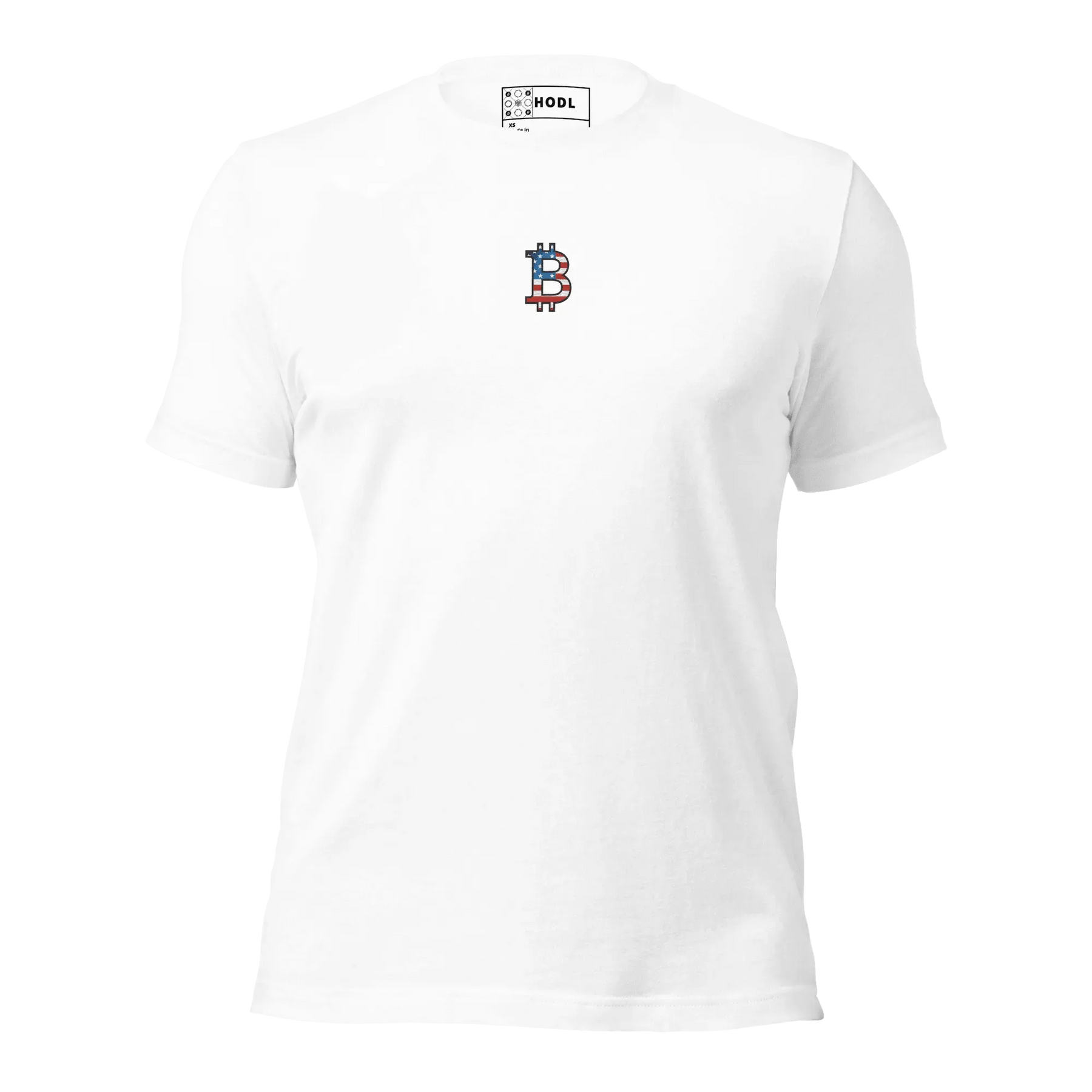 Bitcoin T-Shirt USA Center – Krypto-Power, Stars & Stripes direkt auf der Brust