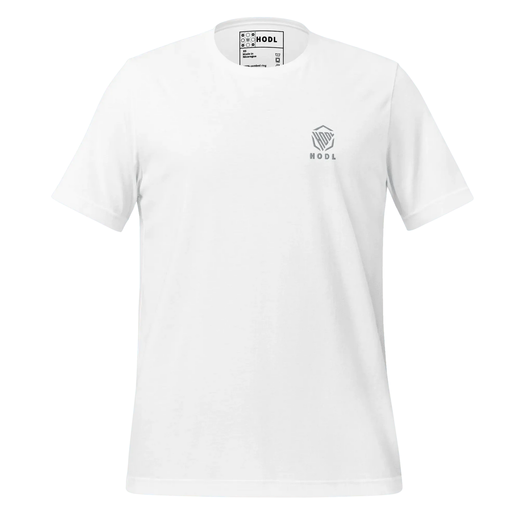 HODL T-Shirt – Silver Logo Stick: Bitcoin Streetwear mit Glanzfaktor